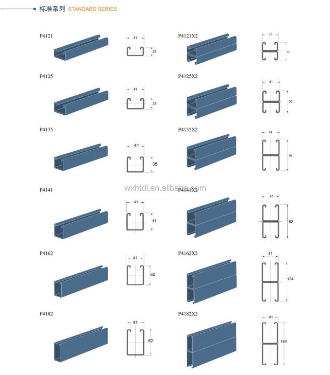 C cbannel sizes: 41*21mm, 41*25mm, 41*35mm, 41*41mm, 41*62mm, 41*82mm, back to back 41*21mm, 41*25mm, 41*35mm, 41*41mm, 41*62mm, 41*82mm.